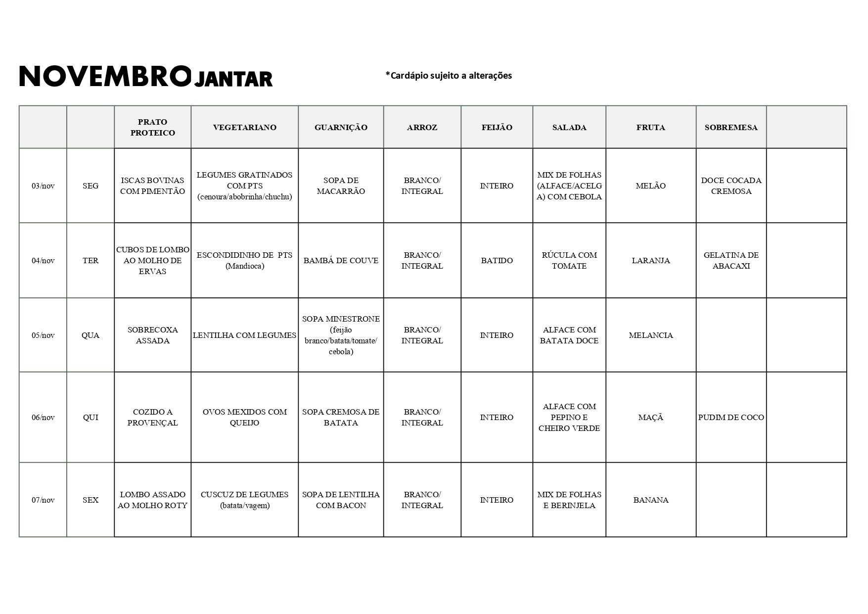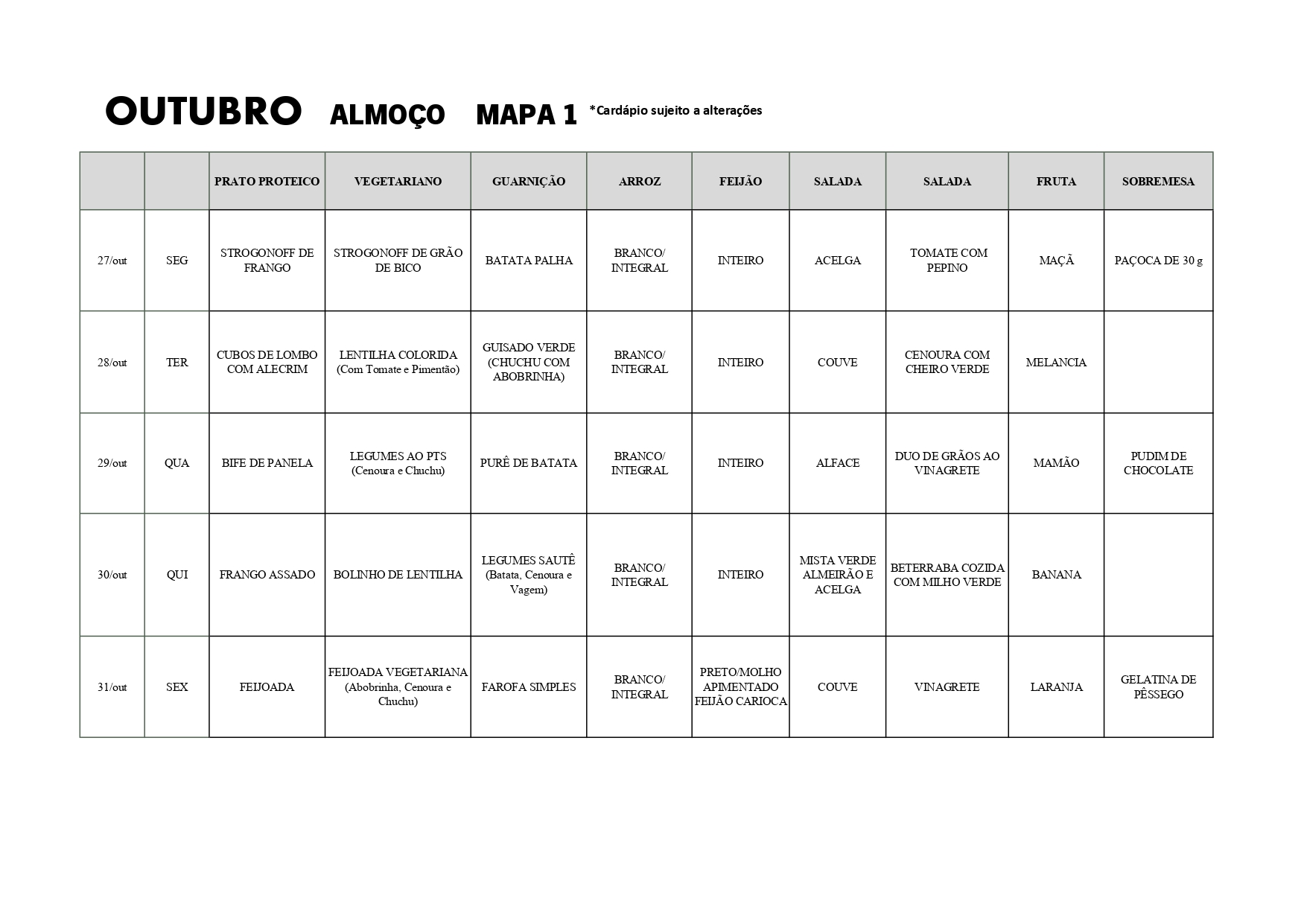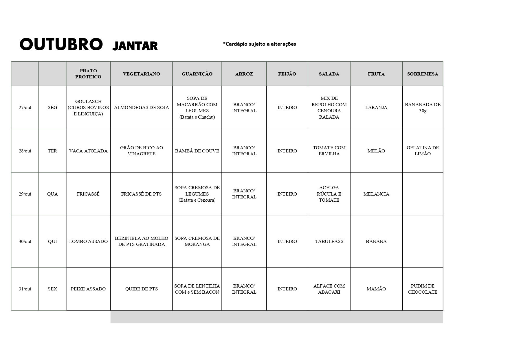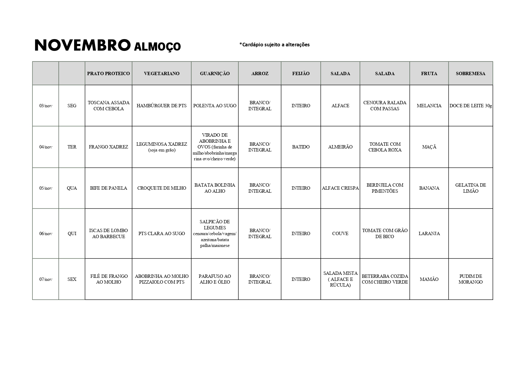 Cardápio do RU